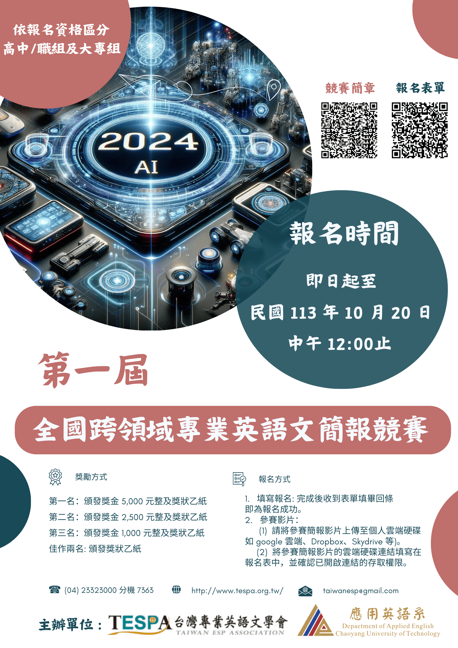標題 | 第一屆全國跨領域專業英語文簡報競賽 |