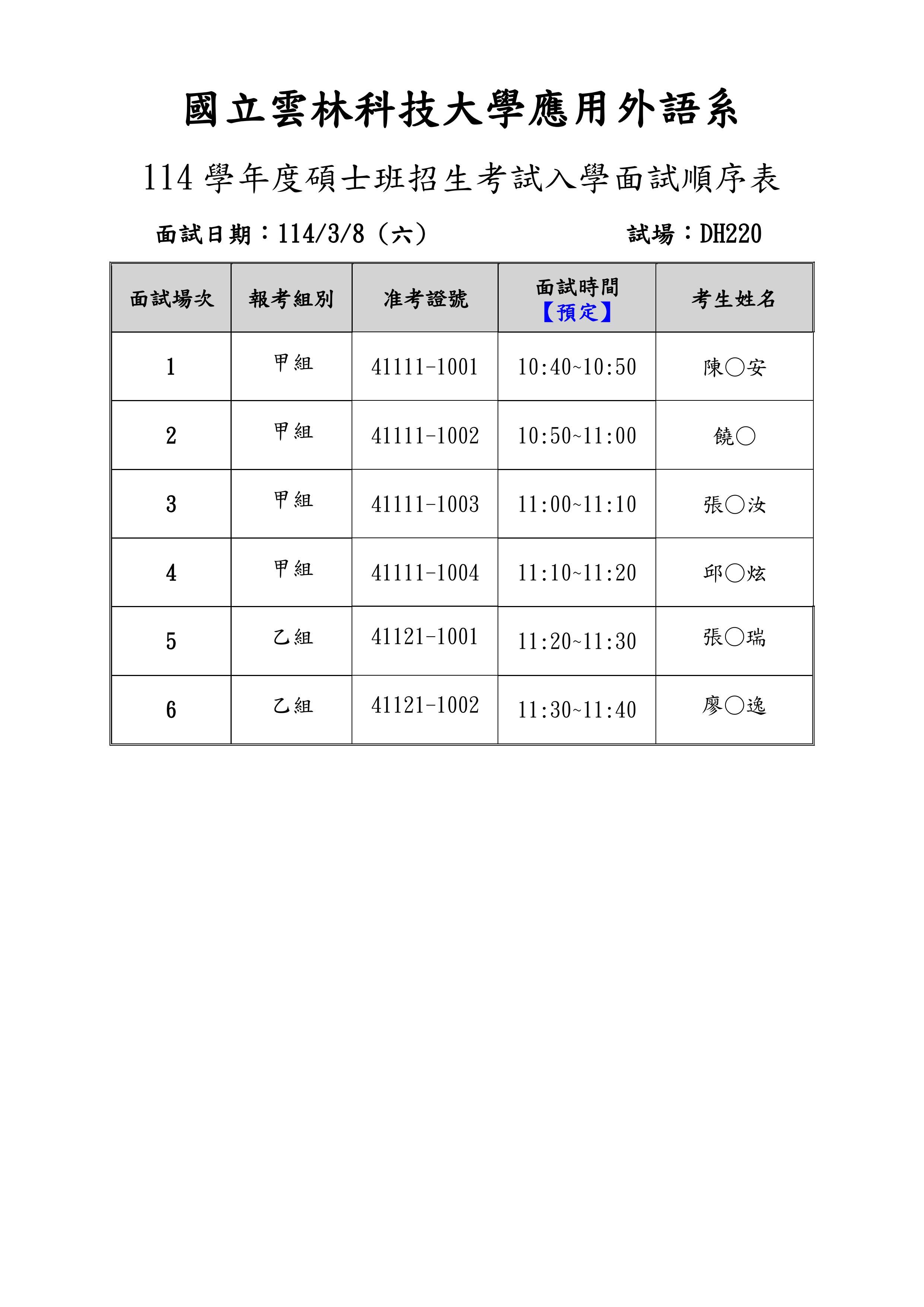 114學年度應用外語系碩士班招生考試入學面試通知.pdf