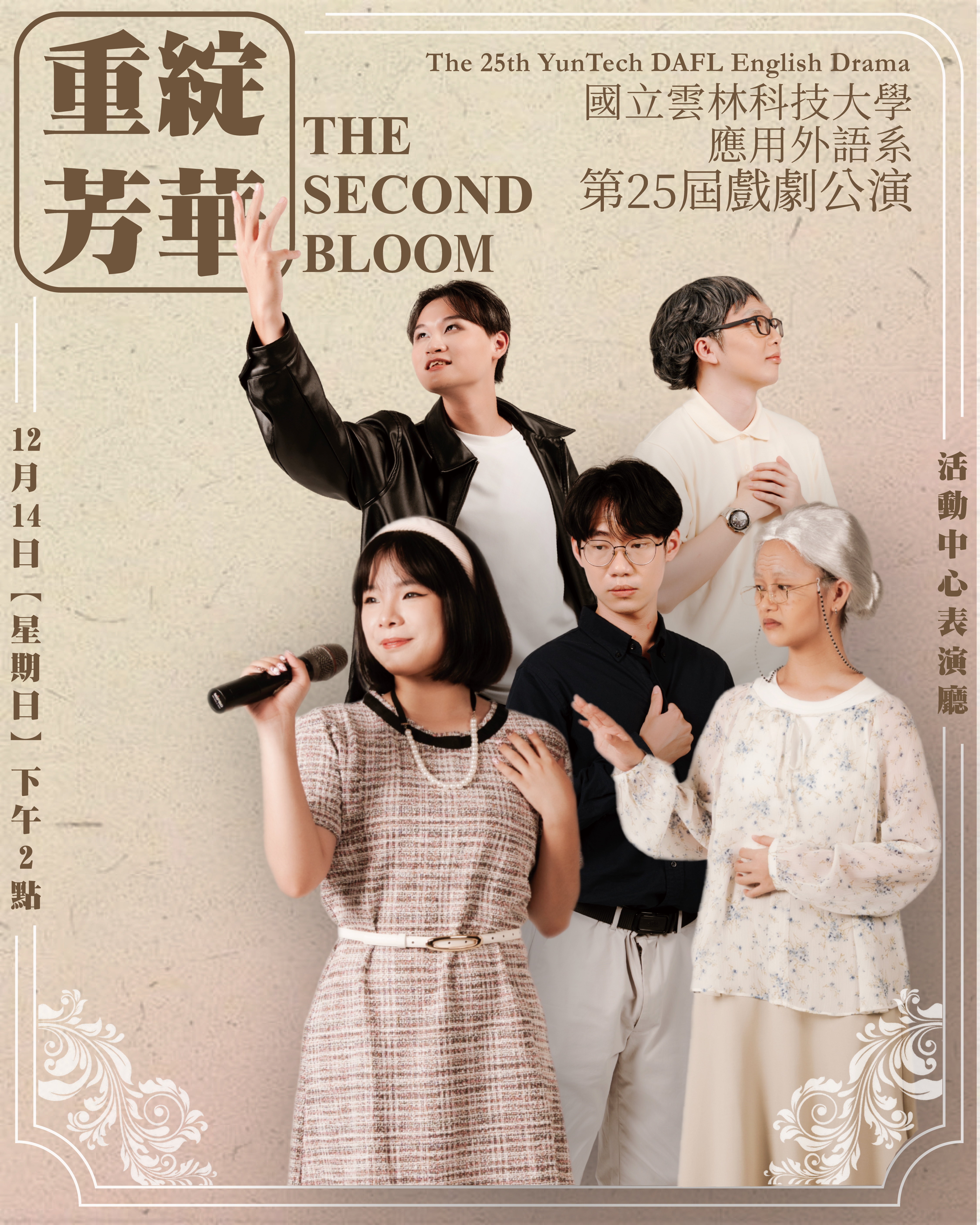 | 標題 | 應外系第25屆戲劇公演【重綻芳華 The Second Bloom】-12/14(日)下午2點,誠摯邀請蒞臨觀賞 |